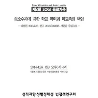 [자료집] 2014.4.26 제3회콜로키움 : 성소수자에 대한 학교 폭력과 학교측의 책임 (0) | 2014.05.14 |
